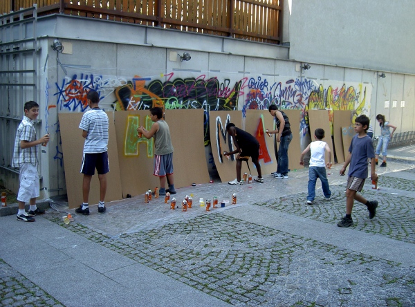 Zhema; Lettering, Workshop, Spray paint, Chipboards, Vienna (2009)
